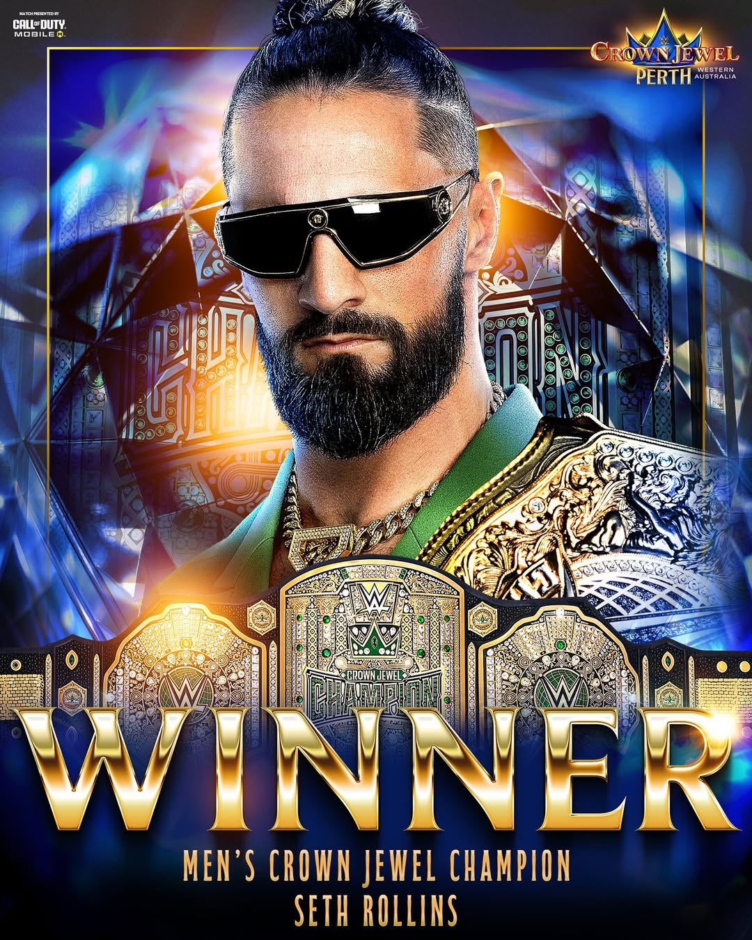 В главном событии вечера чемпион мира в тяжёлом весе Сет Роллинс одолел бесспорного чемпиона WWE Коди Роудса, став мужским чемпионом Crown Jewel. Таким образом, теперь счёт между ними — 1:3 в пользу Роудса с момента его возвращения в 2022 году.